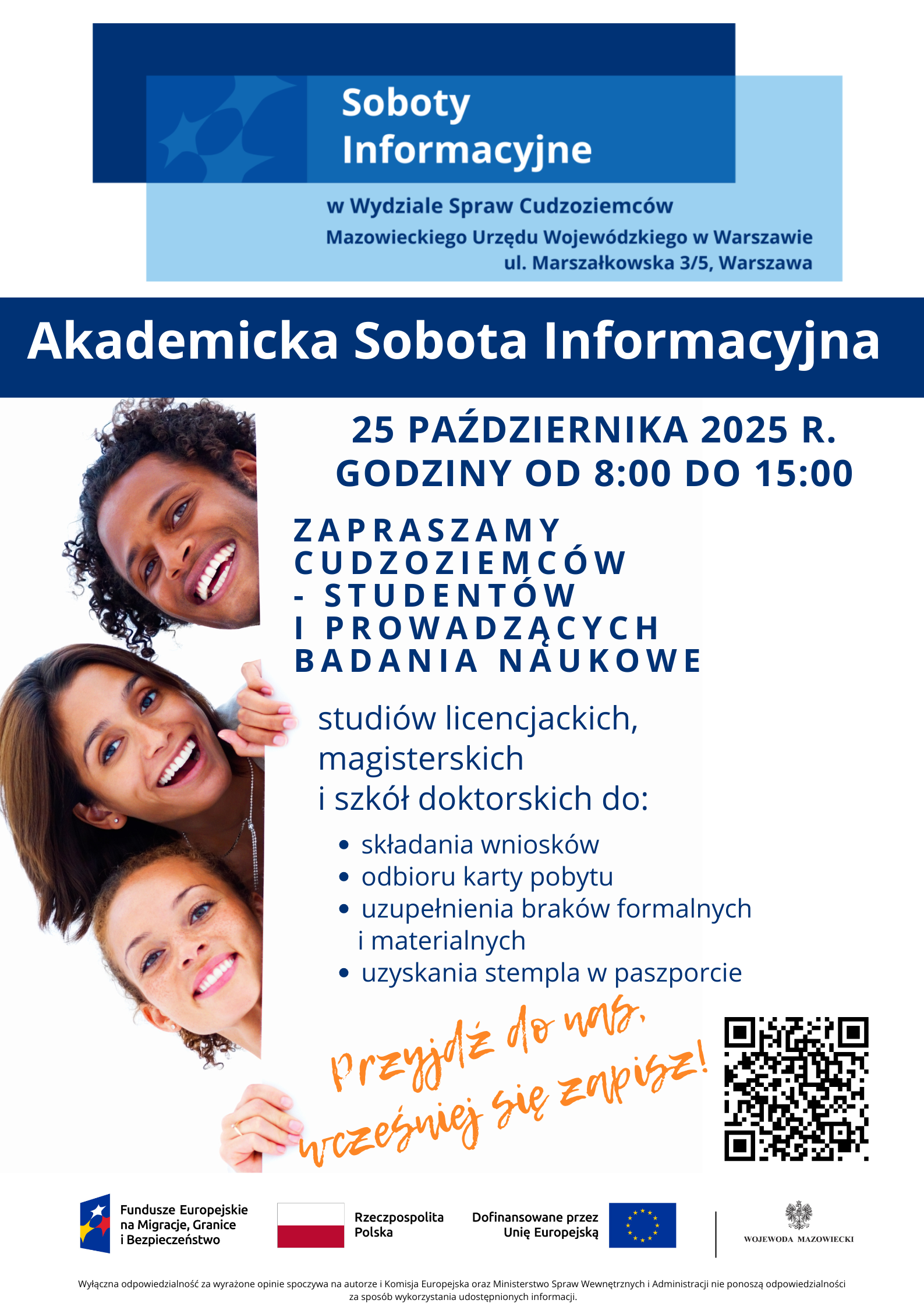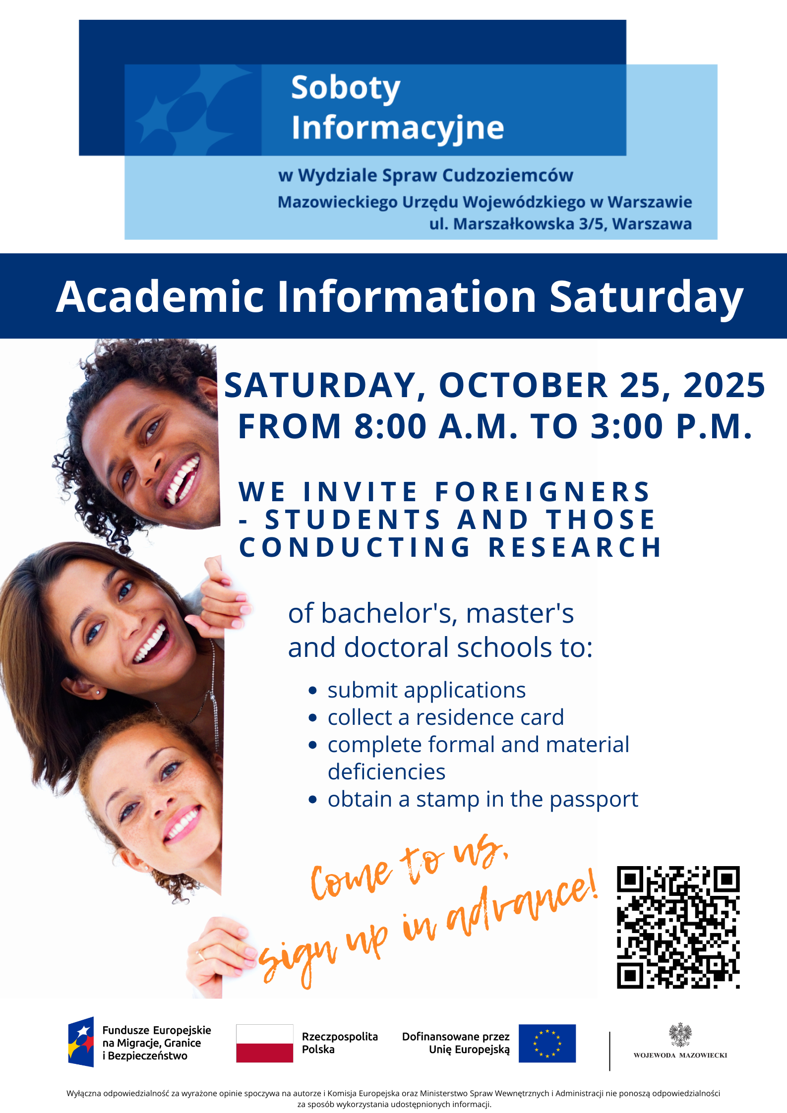 Zaproszenie do wzięcia udziału w organizowanym przez Wydział Spraw Cudzoziemców Mazowieckiego Urzędu Wojewódzkiego przedsięwzięciu ,,Akademicka Sobota Informacyjna".